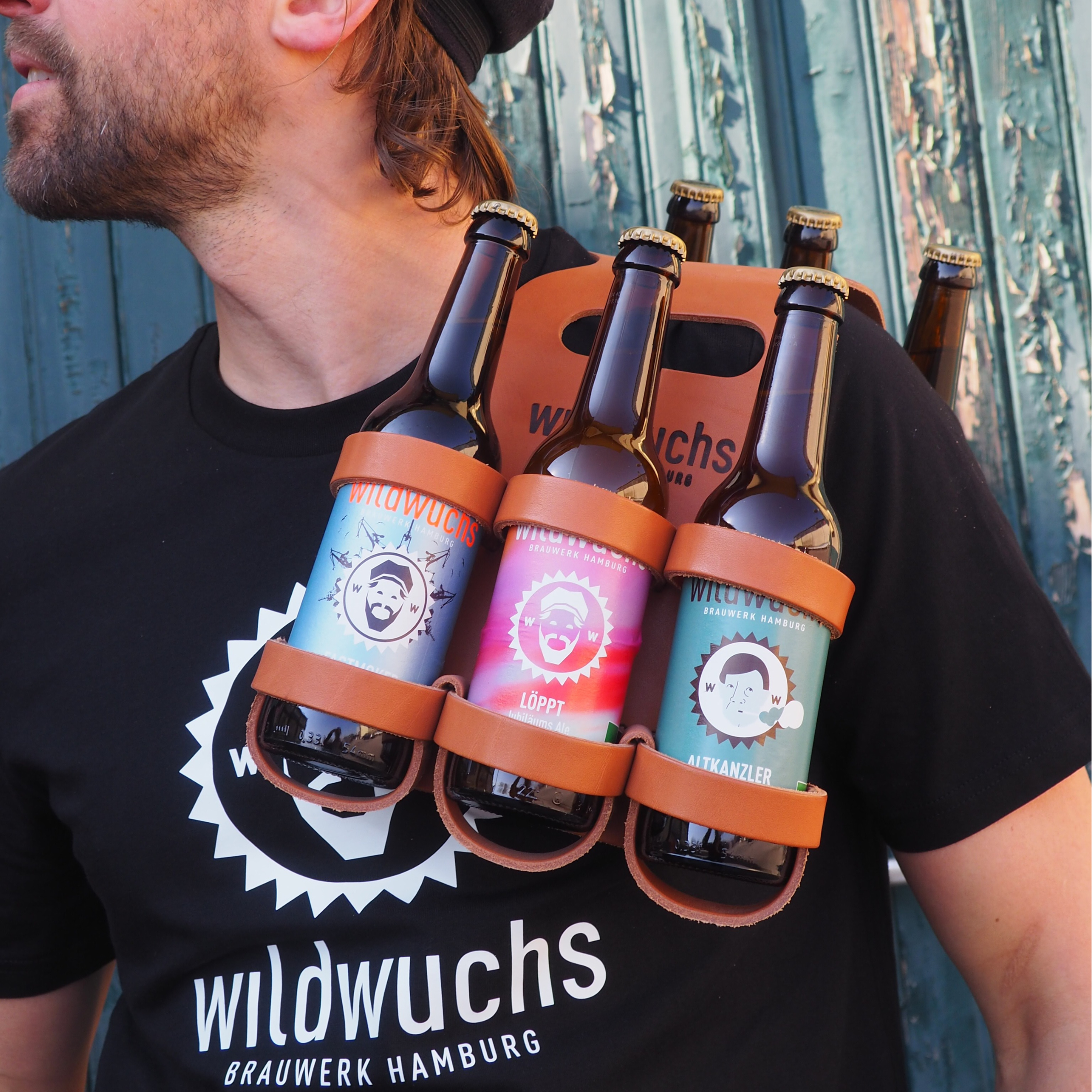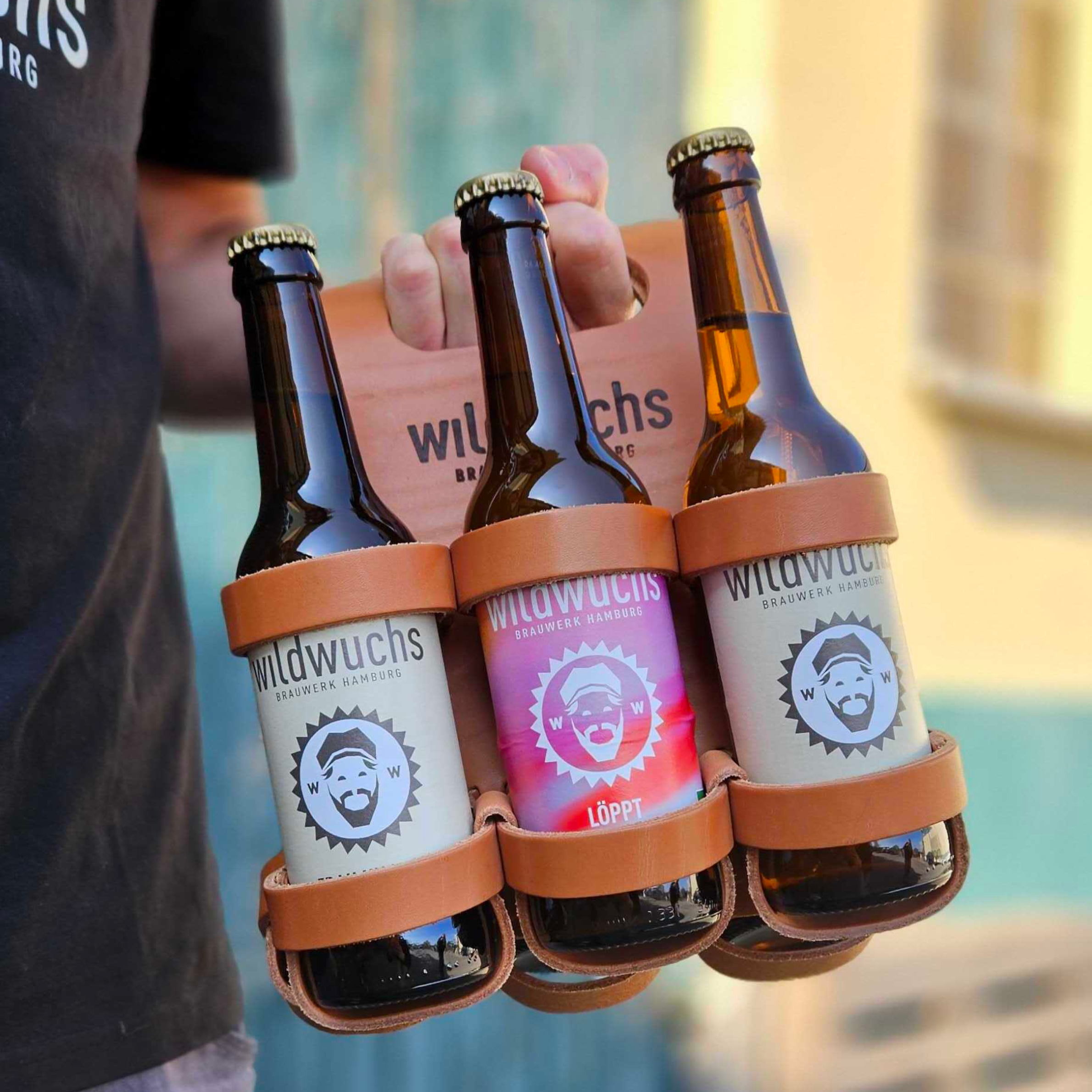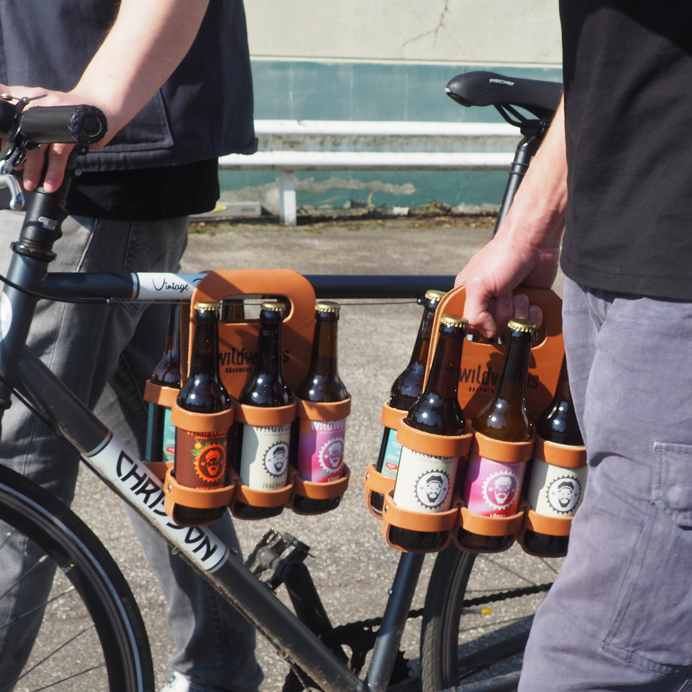 Bierträger für Fahrrad, Hand und Schulter, handgefertigt von der Ledermanufaktur Bosse Richter. Das "Must Have" für stilsicheren Biergenuss.